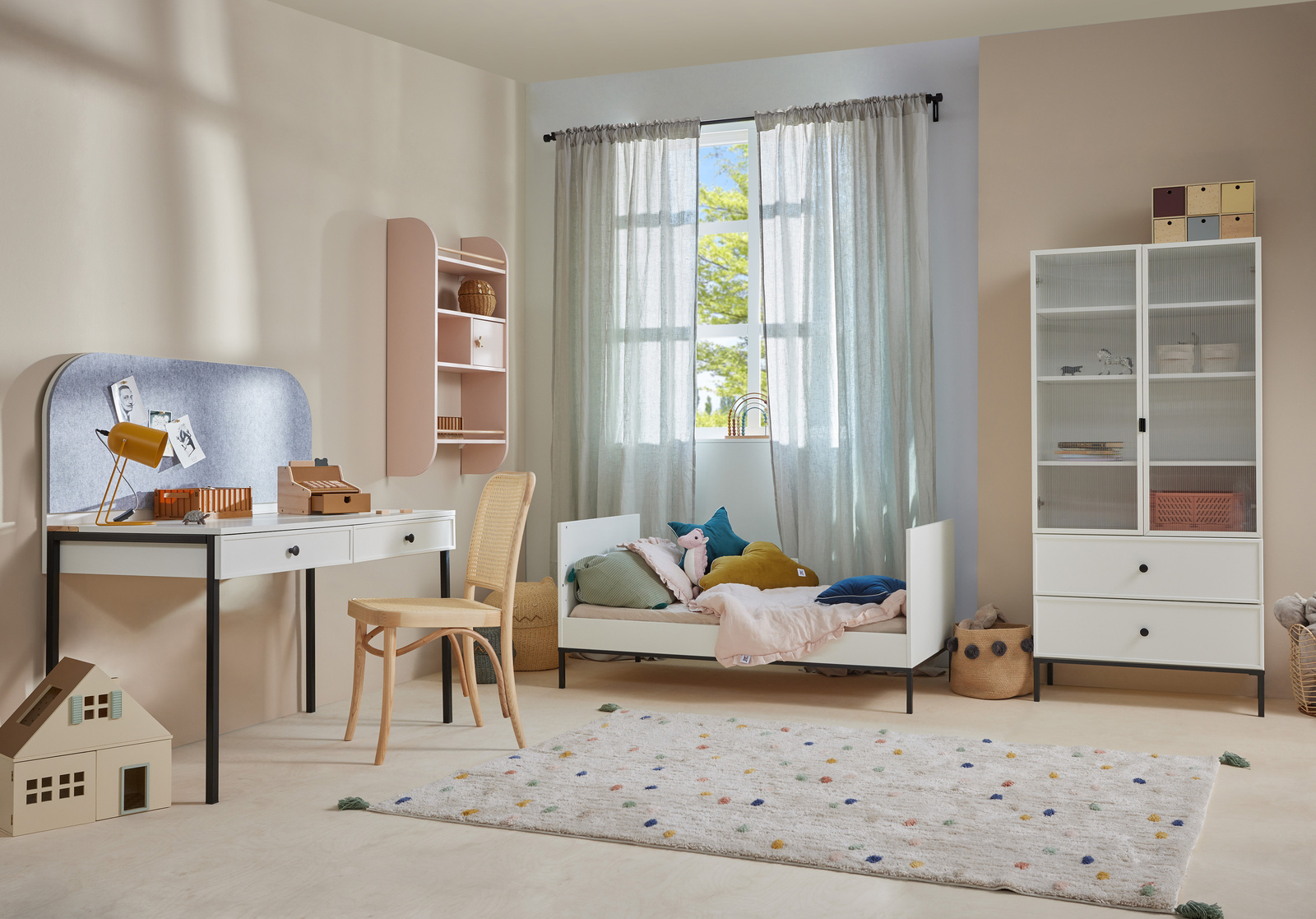 Eleganz, Schlichtheit, Detailgenauigkeit Eleganz, Schlichtheit, Detailgenauigkeit Eine Kollektion minimalistischer, ausgewogener und einfacher Kindermöbel. Ausdrucksstarke, geometrische Form, angereichert mit eleganten Metalldetails. Versteckte bewegliche Teile und schallabsorbierende Tischplatten sorgen für angemessenen Komfort und Sicherheit. Eine Linie, die nach den Regeln der ganzheitlichen Entwicklungsphilosophie von Montessori konzipiert wurde.