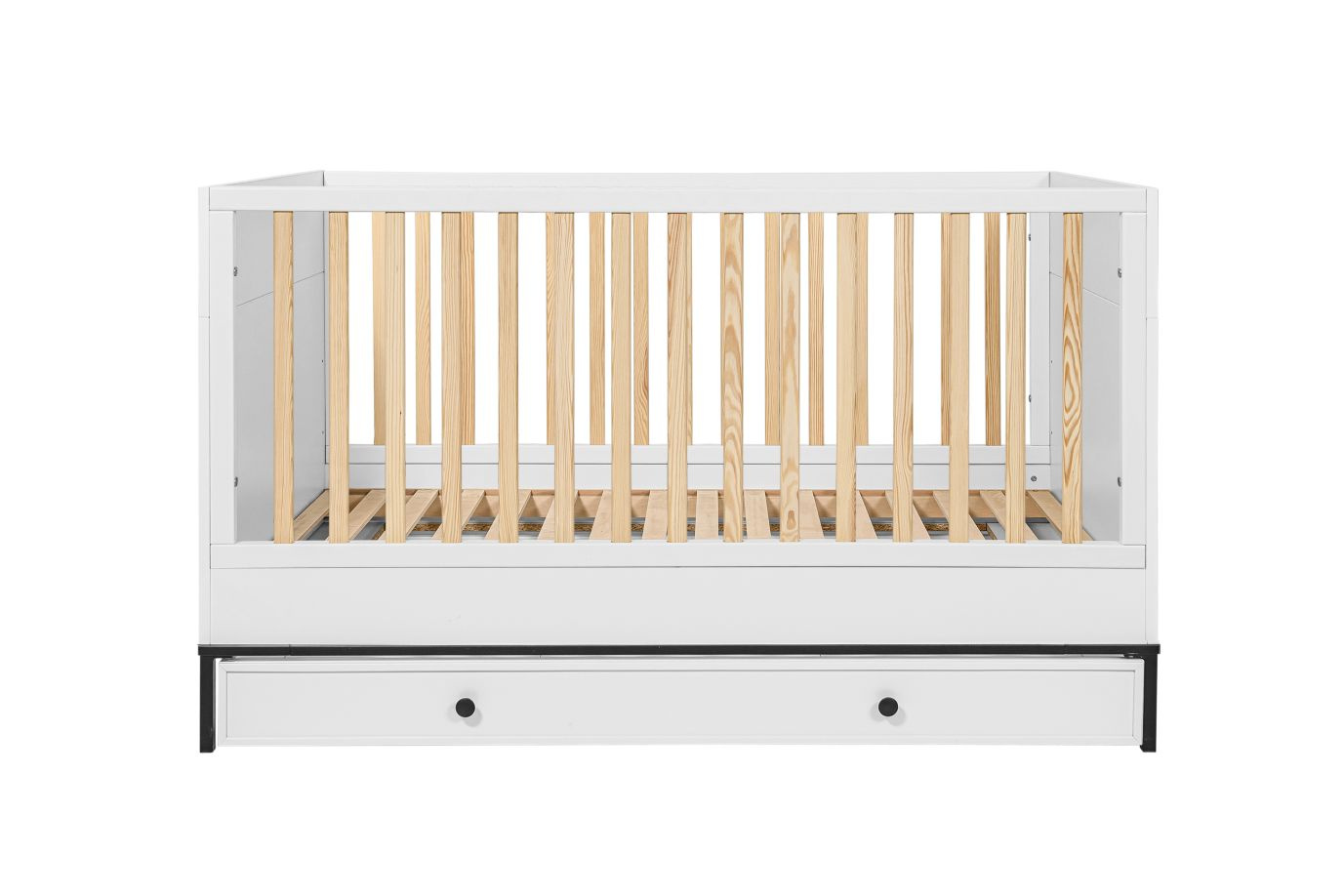 - Drei Stufen der Positionierung des Matratzenrahmens, die an die Entwicklung des Kindes angepasst sind