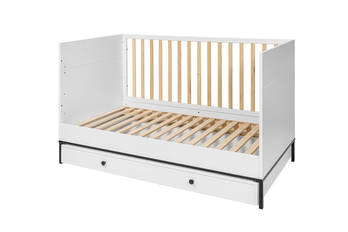 - drei abnehmbare Stangen in einem der Rahmen des Kinderbettes ermöglichen dem Kind den freien Ein- und Ausstieg