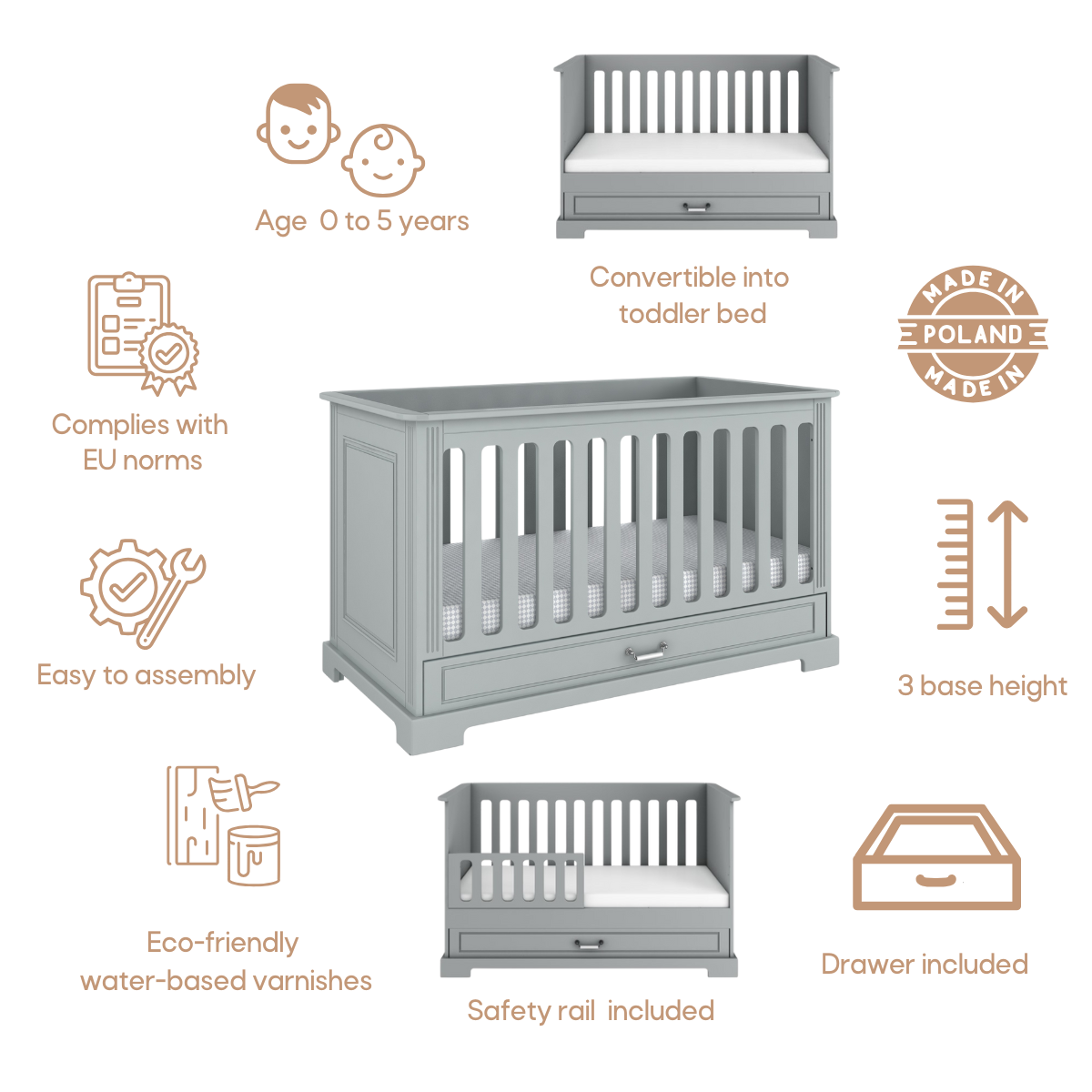 Ines neutral gray cot / toddler bed 70x140 with sofa bed function