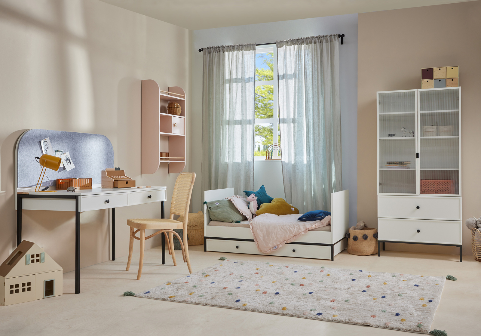 Elegancja, bezpretensjonalność, detal Kolekcja minimalistycznych, zrównoważonych i prostych mebli dziecięcych. Wyrazista, geometryczna forma, wzbogacona eleganckimi detalami z metalu. Ukryte elementy ruchome, dźwiękochłonne panele biurka zapewniają odpowiedni komfort i bezpieczeństwo. Linia zaprojektowana według reguł holistycznej filozofii rozwoju Montessori.