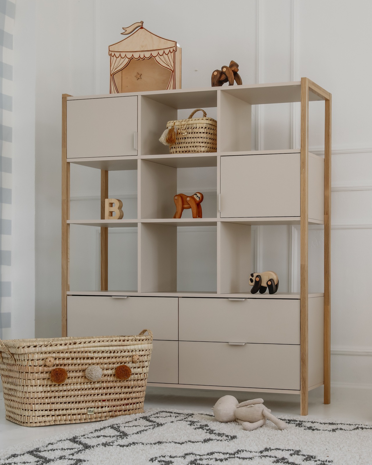 - Regał Versa Wide w kolorze latte to pojemny i funkcjonalny mebel z szufladami i szafkami, który pomoże utrzymać porządek w pokoju dziecka i nastolatka. Nowoczesny design, naturalne dębowe nogi i bezpieczne materiały to styl i jakość w jednym.